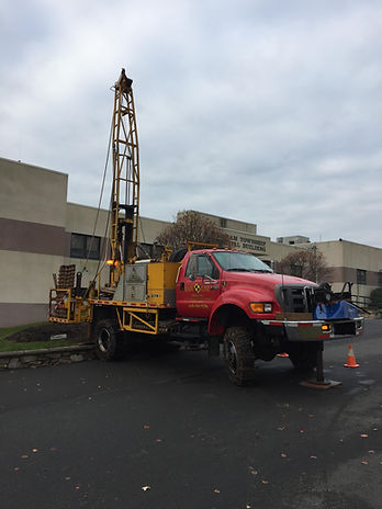 Drilling companies in the Philadelphia area appear predominately to use truck-mounted drilling rigs, which are typically 8 or 9 feet wide and 30 feet long. An example is pictured here: https://www.mainlinedrilling.com/contact.